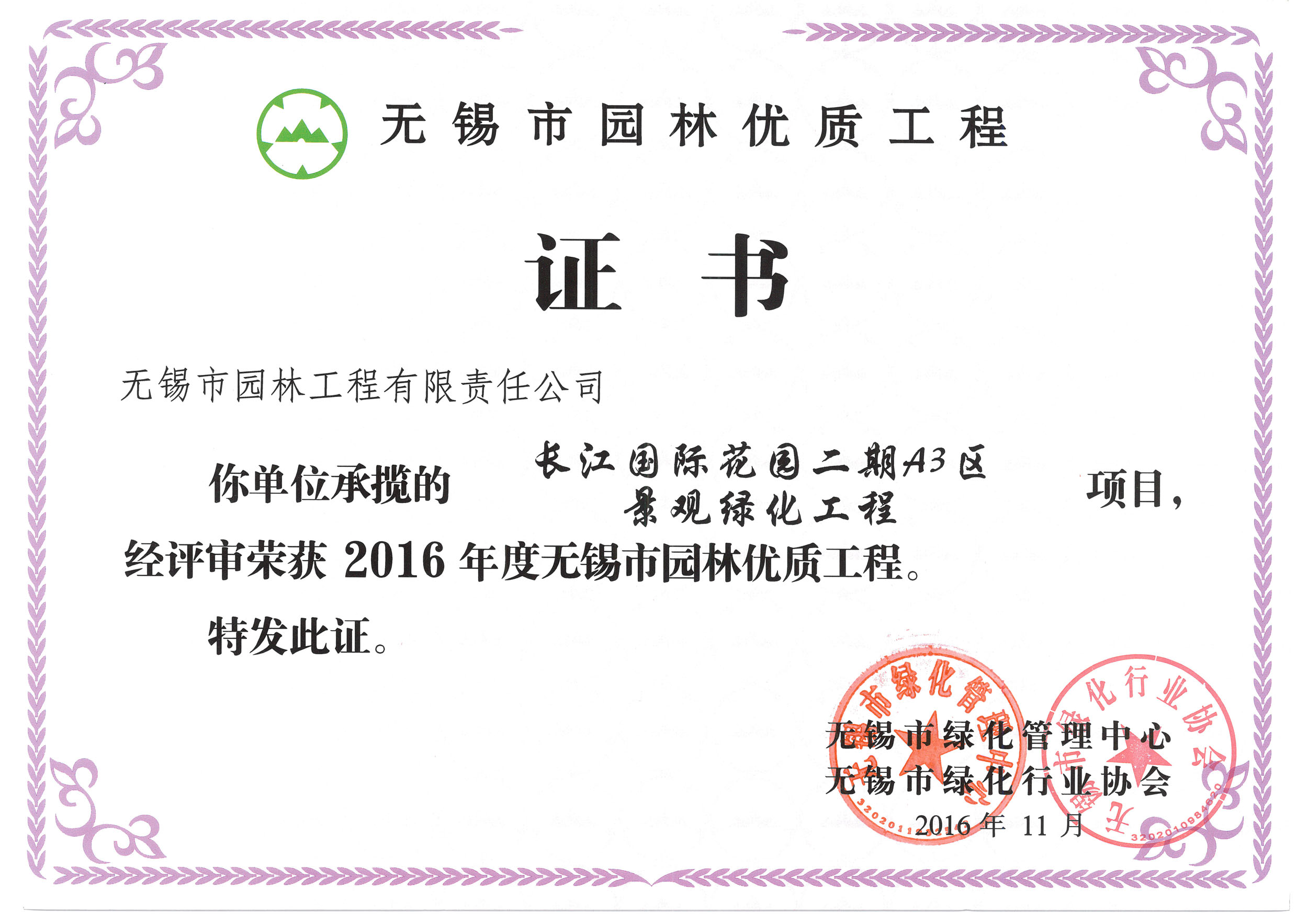 2016揚(yáng)子杯——無(wú)錫地鐵1號(hào)線沿線景觀綠化工程三標(biāo)